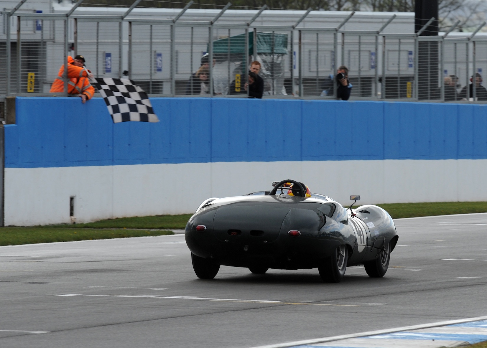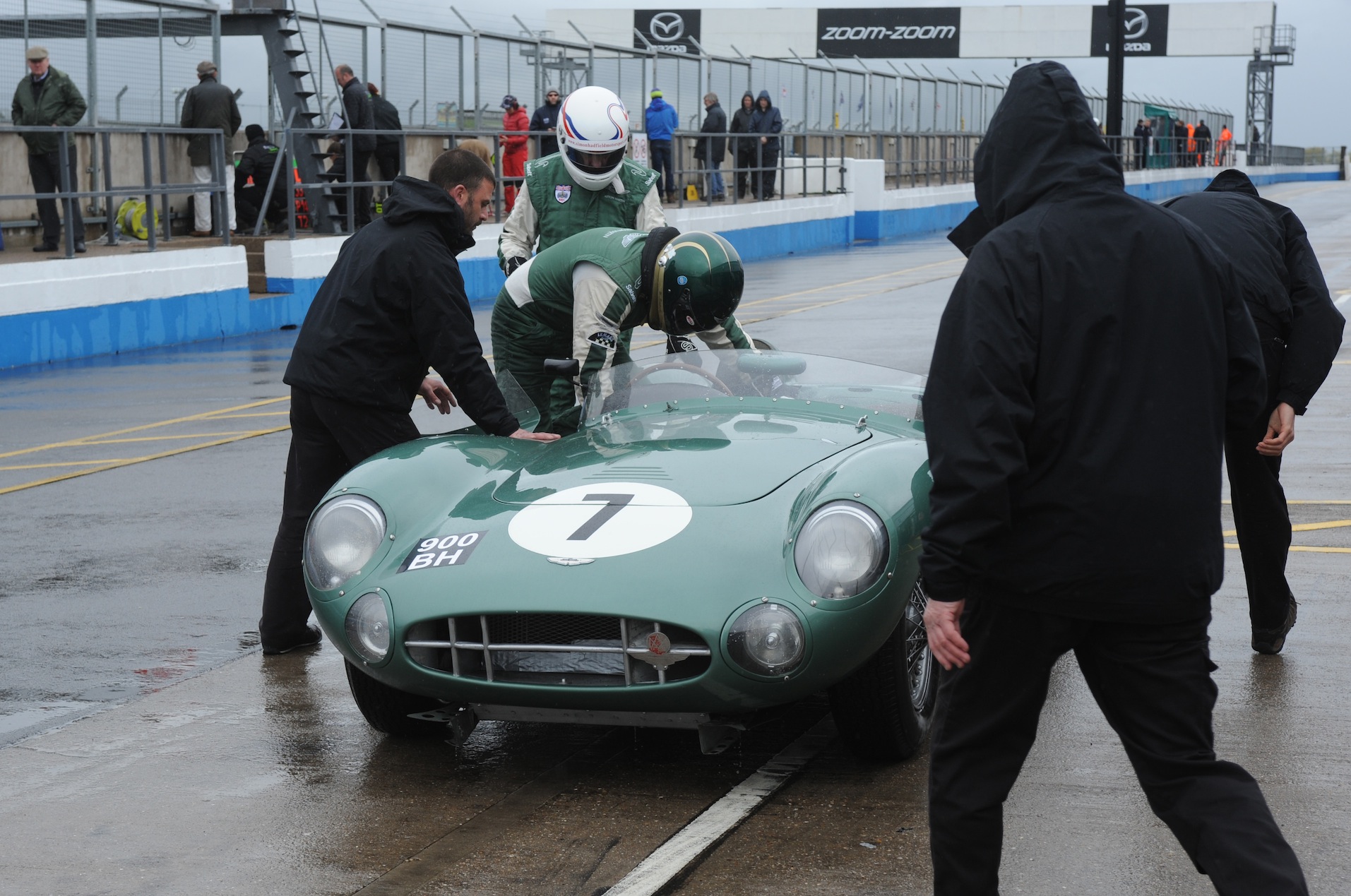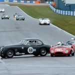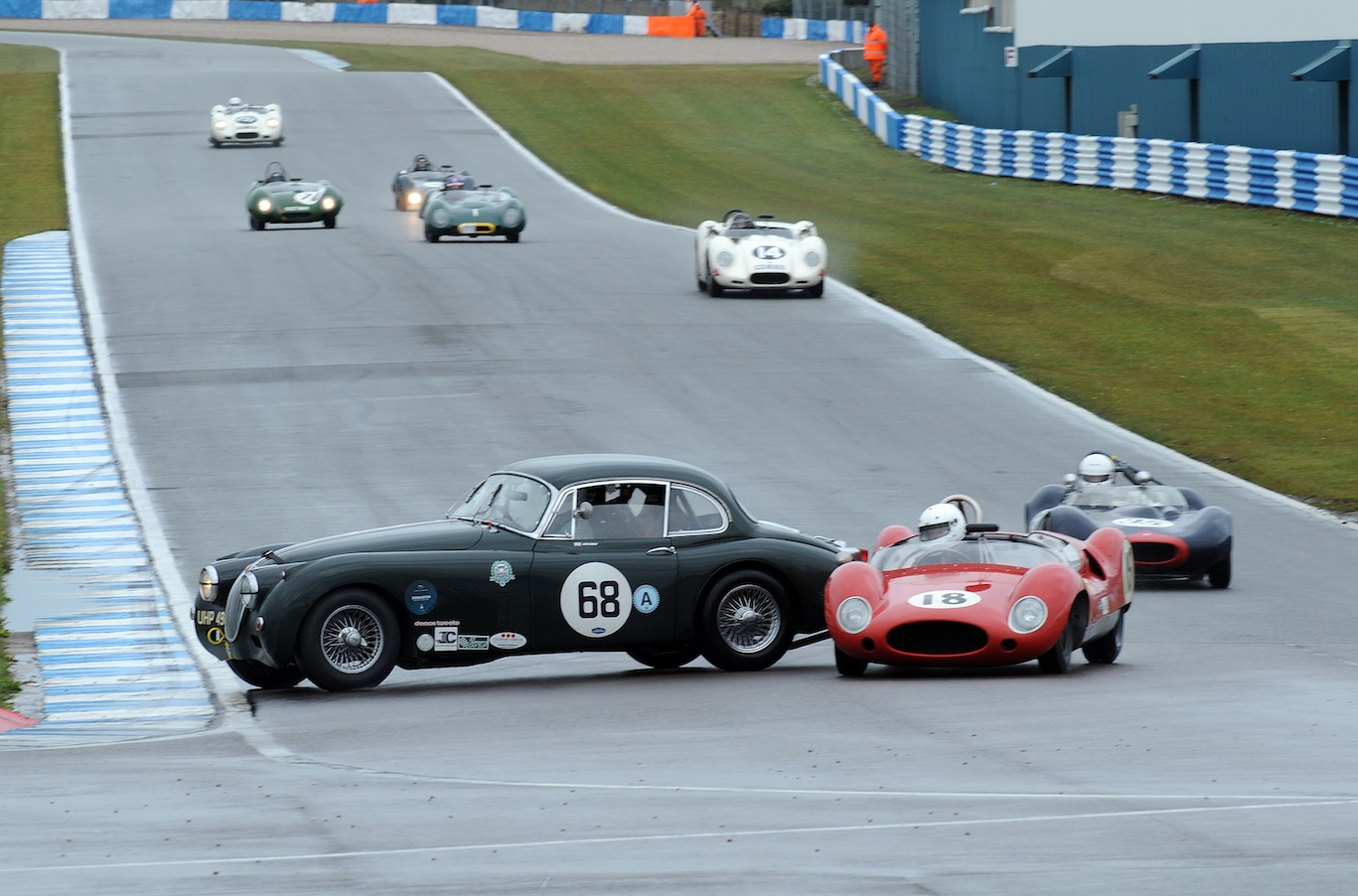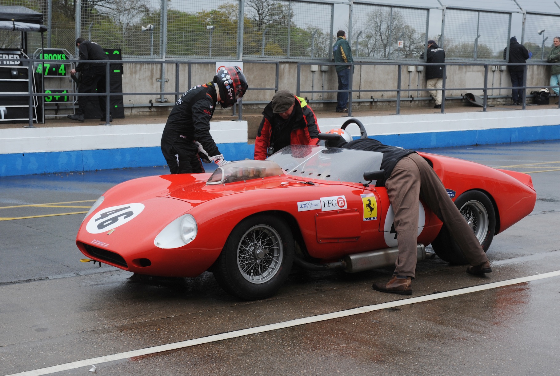 The rain returned with a vengeance for Monday morning’s Stirling Moss Trophy race, where pole sitters Bobby Verdon-Roe and Gregor Fisken sat in the stunning Ferrari 246S, but the rain meister Chris Ward took the lead from the start in the JD Classics Lister Jaguar Costin and from there he never looked back. As the sixty-minute race unfolded the track did start to dry out, the slippery conditions caught out a few competitors but without serious incident. It ended as a Lister dominated race with Richard Kent coming in 2nd and the pairing of Tony Wood and Will Nuthall (3rd) blocked out the top three spots leaving the Lotus 15s of Oliver Bryant and Dion Kremer emerging out of the spray to round out the top five.