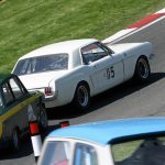 Behind Belcher, an excellent battle raged for third although Rob Wainwright retired his flying Austin A40 at mid-race after getting some damage at the front of the car. Instead, Mark Watts (Ford Mustang) just held off Roger Stanford (Lotus Cortina) and Bob Bullen after a great battle. Race two on Sunday was also a cracker as Stanford wrestled his Cortina to the front to beat Bullen by a third of a second with Lewis close behind in third.