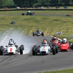 The Historic Formula Ford pack again delivered some incredible racing, although Sunday’s race was halted when a sizeable accident befell Nelson Rowe. Thankfully, though his Crossle was significantly damaged, Nelson was unharmed.