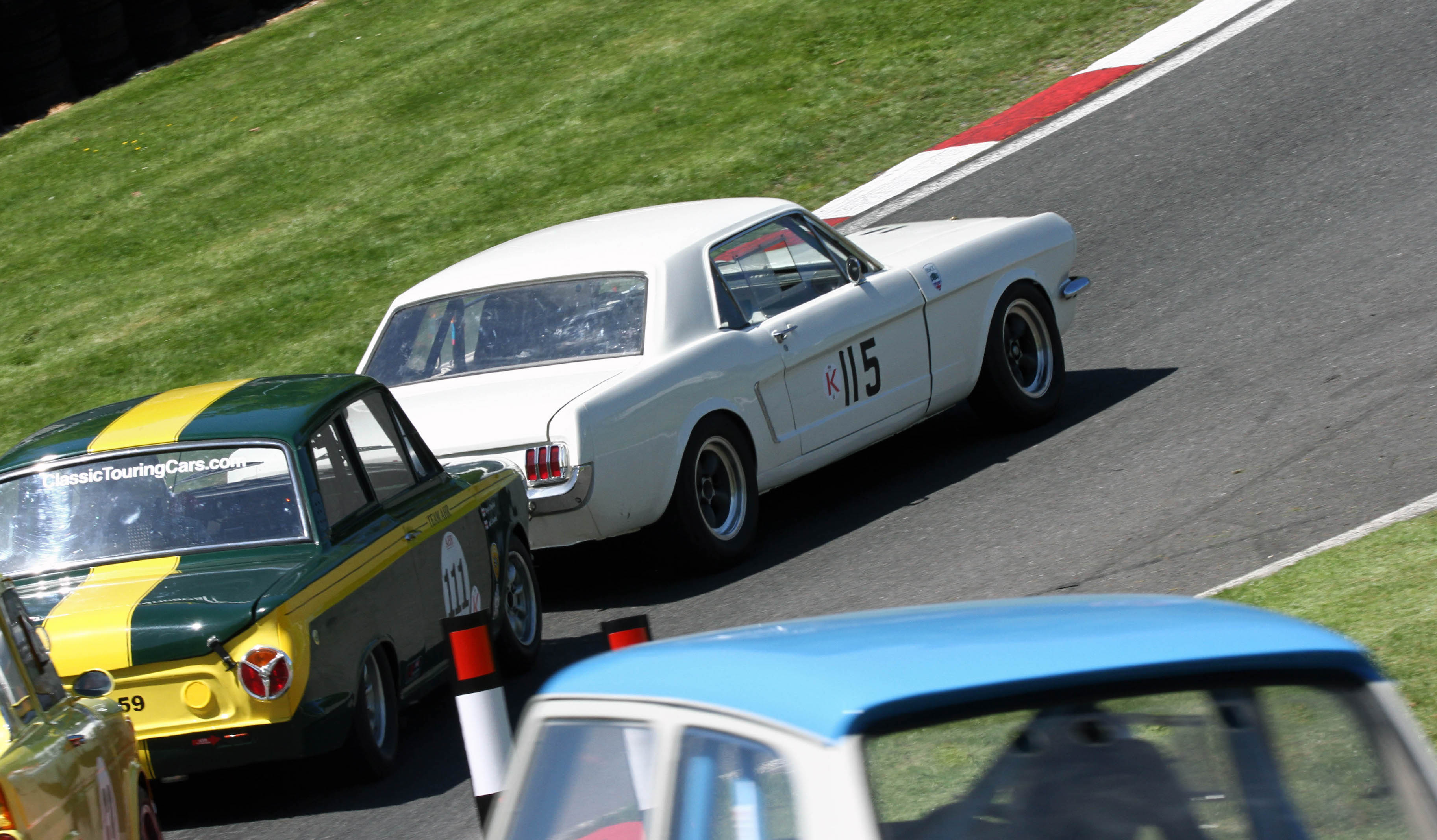 Behind Belcher, an excellent battle raged for third although Rob Wainwright retired his flying Austin A40 at mid-race after getting some damage at the front of the car. Instead, Mark Watts (Ford Mustang) just held off Roger Stanford (Lotus Cortina) and Bob Bullen after a great battle. Race two on Sunday was also a cracker as Stanford wrestled his Cortina to the front to beat Bullen by a third of a second with Lewis close behind in third.