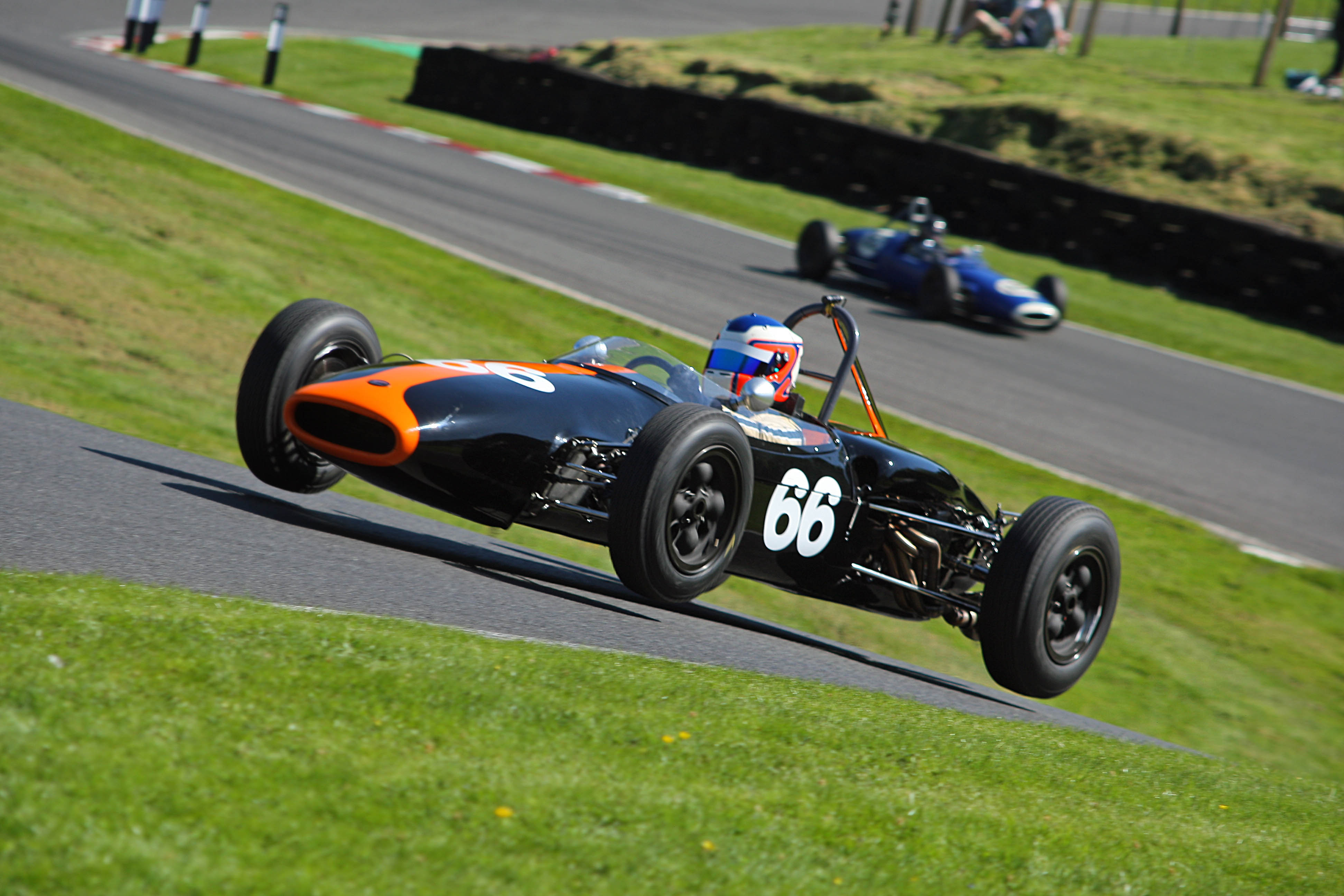 Local ace Cameron Jackson set a blistering pace to take a consummate double in the rear-engined Formula Junior races in his Brabham BT2. “That was great: the car is flying and it’s a joy to drive,” said Jackson. His stunning speed, notably through the Mountain, sent Jackson clear of his rivals, who were headed by category newcomer Michael O’Brien in the ex-Alastair Pike Lotus 20 from the Silverstone-based Speedsport team. “The car is still a work in progress,” said O’Brien, who claimed two second places to his friend and former team mate. Peter de la Roche (Lola Mk3) and Jonathan Fyda (U2 Mk3) led the chase of the two rapid leaders.