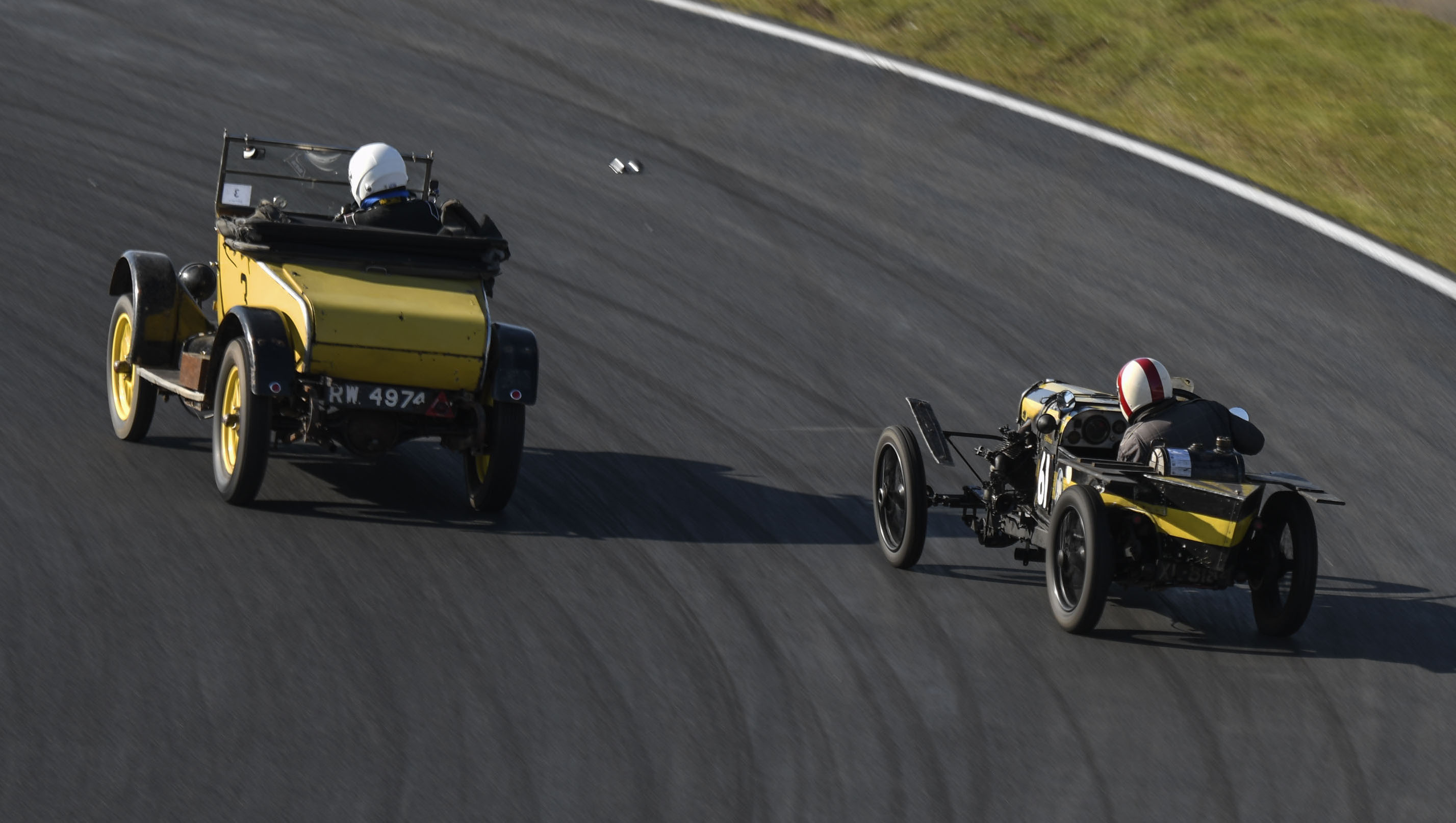 The field undertook three driving tests designed to assess the manoeuvrability, acceleration and braking ability of the car as the sun ventured into the blue sky above. After lunch the field was divided into three groups to take to the track for a trio of 40-minute High Speed Trials, in which each Competitor aimed to achieve a target number of laps.