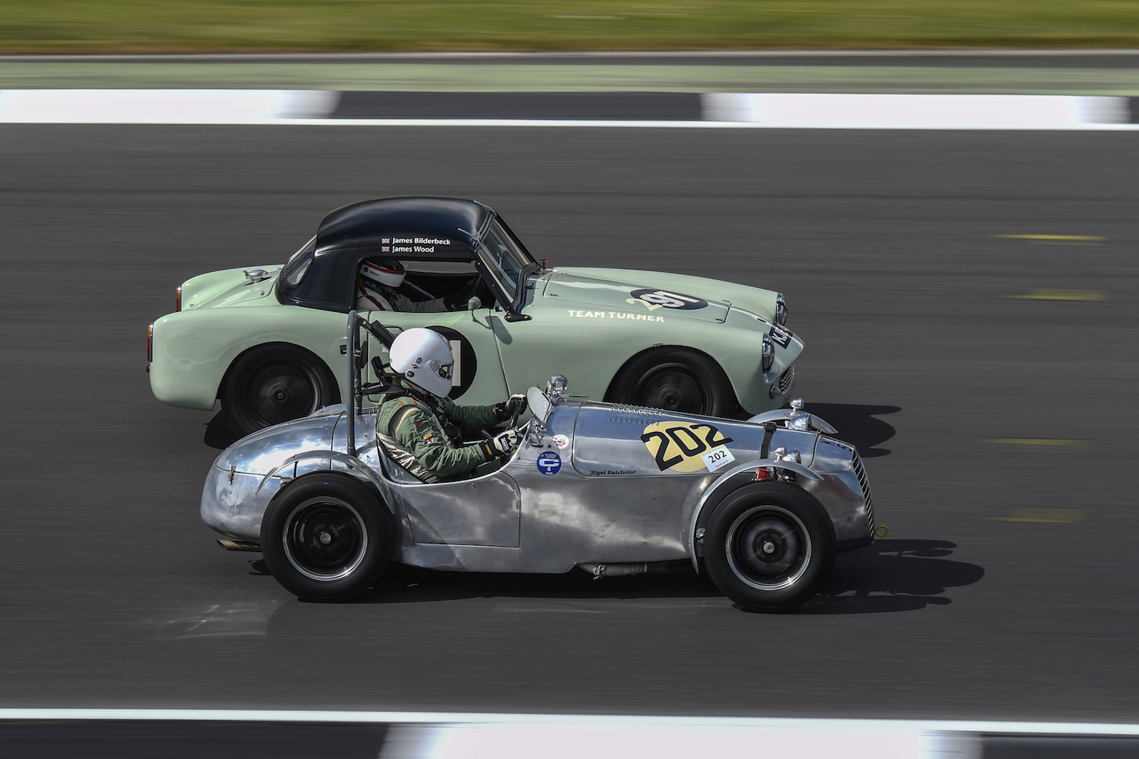 Saturday saw the Vintage Sports-Car Club’s prestigious GP Itala Trophy races take centre stage during the afternoon. A combined grid of Special Pre-war Sports-Cars and the larger capacity cars from the Club’s revered Standard & Modified Sports-Cars – moved due to oversubscription for the popular series – began proceedings with a capacity line-up of road-going machinery in action. Winner of the same race last year, German Rudi Friedrichs got the better of pole-sitter, Dougal Cawley’s GN/Ford from the start and powered his Alvis Firefly to a comfortable Silverstone Trophy victory, with Historic racing stalwart, Richard Pilkington claiming his 7th Fox & Nicholl Trophy success in his Talbot T26 amongst the ‘Set 3’ contingent.