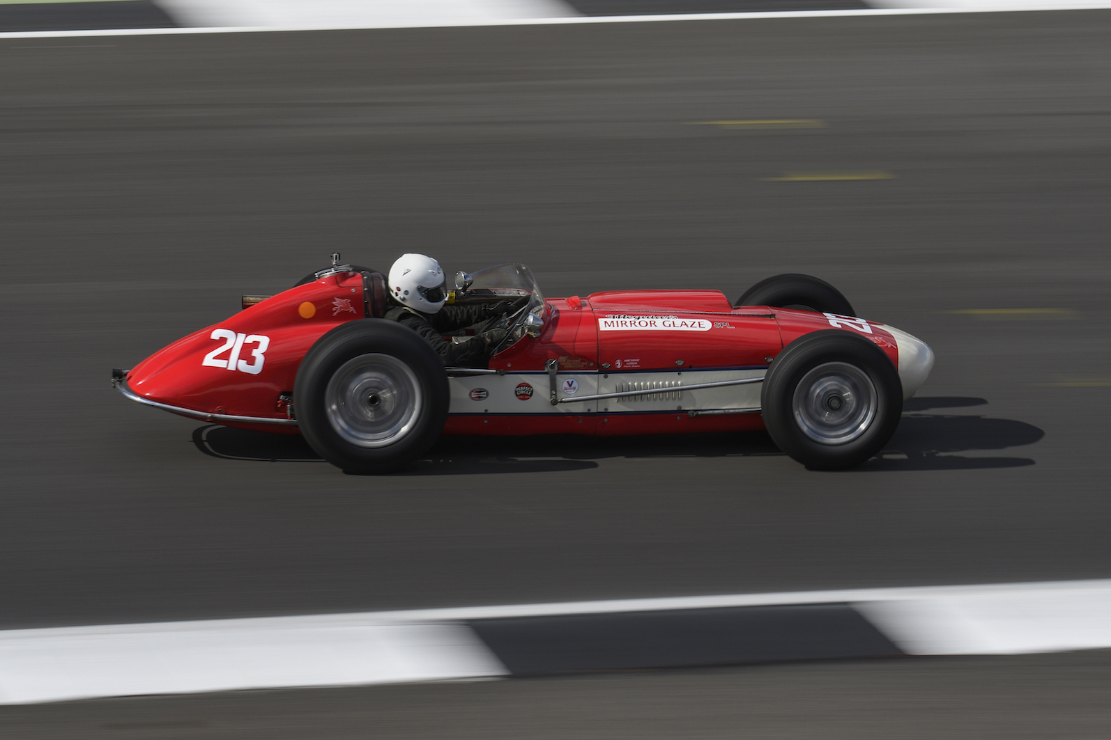 Despite a smaller entry than hoped, the ever-popular F3 (500) Racing Cars put on a show in the day’s penultimate event, as the experienced pairing of Gordon Russell (Mackson) and Xavier Kingsland (Staride) traded places throughout, with the former making the telling pass on the exit of Woodcote on the final lap. Having led early on, Richard de la Roche took the final podium place in the 2015 Championship winning Cooper Mk 5.